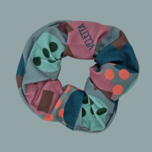 Turbantes y Coleteros (scrunchies) de tela con estampados únicos Veletta, confeccionados a mano.